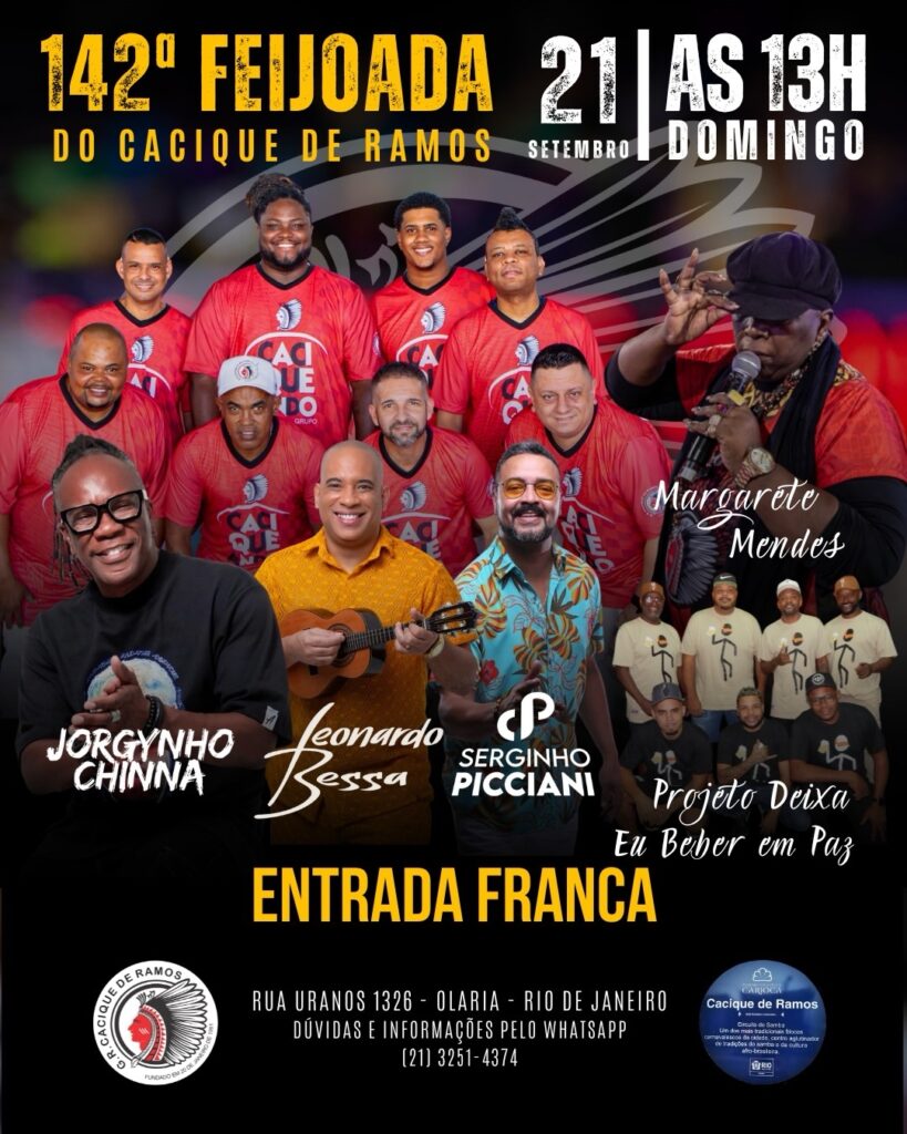 O Doce Refúgio será palco de mais uma grande celebração neste domingo, 21 de setembro, a partir das 13h. O Cacique de Ramos promove a sua 142ª edição da tradicional Feijoada, evento que une música, cultura, gastronomia e a alegria contagiante do samba.