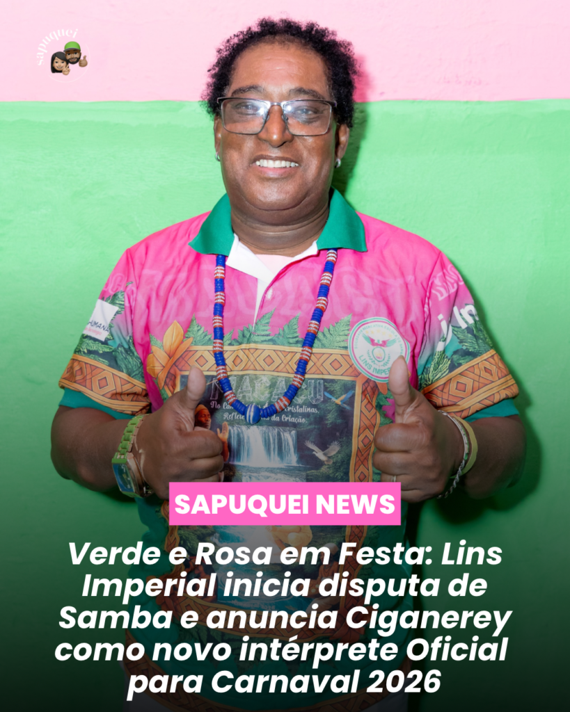 A Lins Imperial vive um momento especial rumo ao Carnaval 2026. Neste domingo, 14 de setembro, a escola da Zona Norte dará início à disputa de sambas-enredo que definirá o hino oficial para embalar seu desfile, e também celebra a chegada de um reforço de peso no carro de som: Ciganerey, que se une a Pedro Vapor e Vitor Barros como as vozes oficiais da verde e rosa.