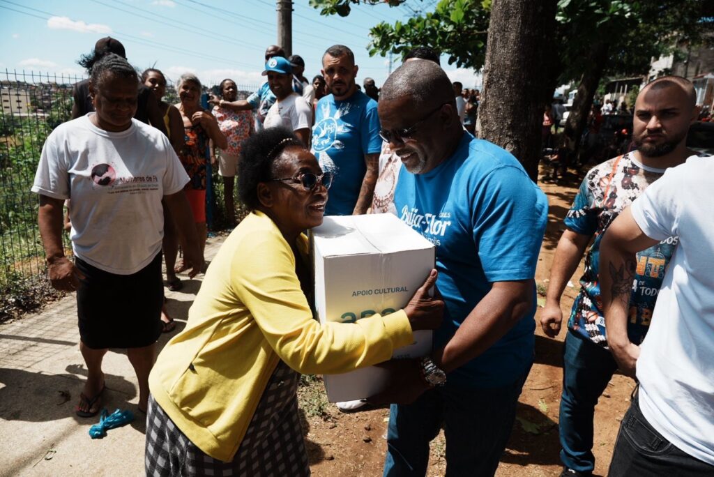 A iniciativa, já consolidada no calendário social da escola, reuniu integrantes da agremiação, moradores e lideranças comunitárias. Para além da tradicional entrega de doces, a ação contemplou também alimentos, reafirmando o compromisso da Beija-Flor com sua comunidade.