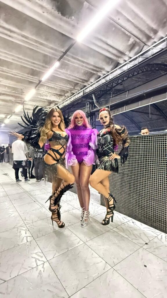 Para a ocasião especial, Erika apostou em uma fantasia deslumbrante com mais de 5 mil cristais, que uniu referências do Carnaval e do Halloween. O look, criado pelo renomado estilista Erickson Ramos, trouxe o tema “anjo sombrio das matas”, mesclando sensualidade, força e elegância. Os detalhes em cristais e recortes precisos realçaram a beleza e o porte da musa, que brilhou intensamente sob as luzes da quadra.