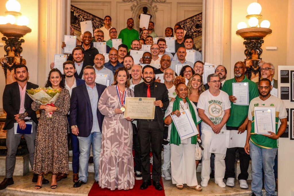 Em cerimônia realizada na noite desta segunda-feira (04), na Câmara de Vereadores do Rio de Janeiro, a presidente executiva da Imperatriz Leopoldinense, Catia Drumond, recebeu o conjunto de medalhas Pedro Ernesto pelo serviço social prestado pela escola à comunidade do Complexo do Alemão e Zona da Leopoldina.