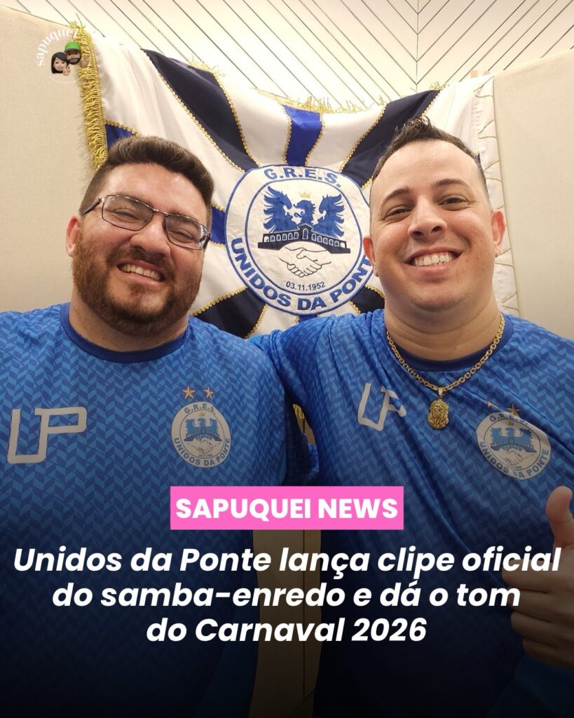 A Unidos da Ponte segue firme rumo ao Carnaval 2026 e acaba de lançar o clipe oficial do seu samba-enredo, marcando mais um passo importante no projeto de renovação da escola. A gravação aconteceu no renomado estúdio Cia dos Técnicos e contou com a presença dos intérpretes oficiais Thiago Britto e Matheus Gaúcho, além dos Mestres de Bateria Junior e Alex, que conduziram a poderosa Ritmo Meritiense — responsável por dar vida e energia ao novo hino da Azul e Branca de São João de Meriti.
